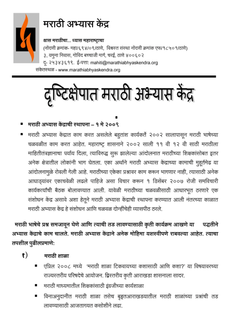 आम्ही मराठी अभ्यास केंद्राच्या माध्यमातून मराठी भाषा संवर्धन करीत आहोत.