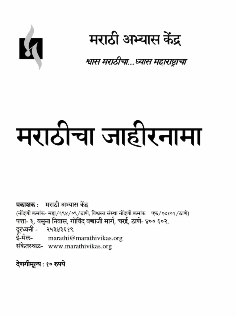 🔔 मासिक खर्चासाठी तातडीची आर्थिक गरज. मराठी अभ्यास केंद्राला प्रत्येक महिन्याला ₹४० ते ₹५० हजारांची आवश्यकता आहे. ₹१० पासून मासिक वर्गणीदार व्हा. आता मदत करा 🤝